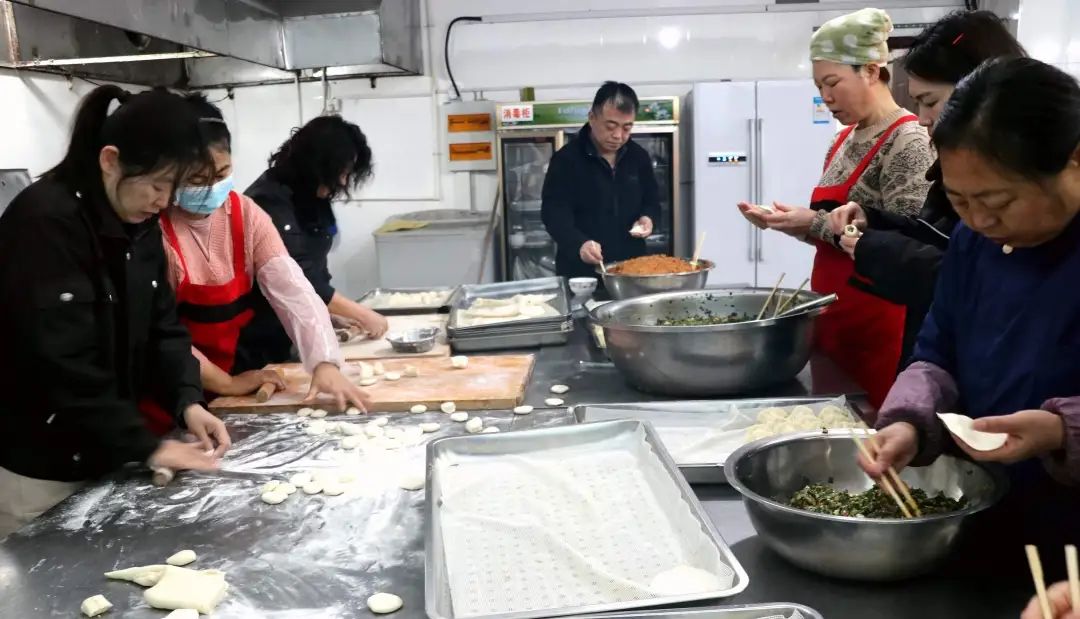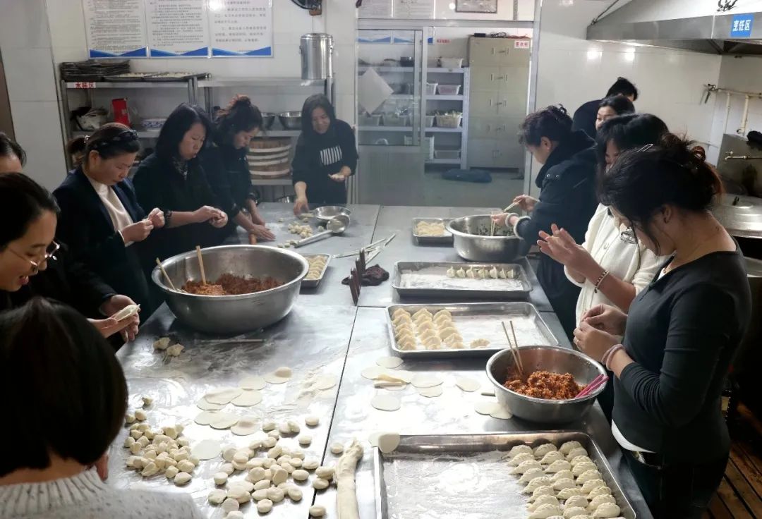 一大早,集團(tuán)公司的食堂里就熱鬧了起來(lái),并已精心準(zhǔn)備好了食材,員工們井然有序的開始了“工作”,有的搟皮、有的揪面團(tuán)、有的包餡兒,各顯身手,最后呈現(xiàn)出各式各樣的餃子。職工們開心地交流,認(rèn)真地操作,時(shí)而探討心得,忙活的熱火朝天,每個(gè)人臉上都洋溢著燦爛的笑容。不一會(huì)兒的功夫,一排排獨(dú)具個(gè)性的餃子很快就擺滿了一個(gè)個(gè)餐盤,大家體驗(yàn)著協(xié)作的樂趣,感受著節(jié)日的溫情,好一幅冬日溫馨的“全家福”。