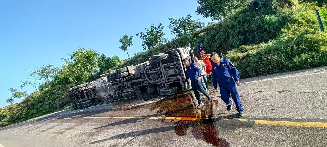 2025年9月6日,一輛裝載液化氣的重型半掛牽引車在土崖塔鄉(xiāng)寨上村附近路段發(fā)生側(cè)翻,現(xiàn)場情況緊急?h應(yīng)急管理局救援大隊(duì)、縣公安局、縣消防救援大隊(duì)、保德守押中隊(duì)?wèi)?yīng)急救援隊(duì)等多部門迅速響應(yīng),第一時(shí)間趕赴現(xiàn)場協(xié)同開展應(yīng)急救援工作,全力守護(hù)群眾生命財(cái)產(chǎn)安全。經(jīng)現(xiàn)場查看,氣罐車罐體出現(xiàn)輕微變形,并伴隨機(jī)油等混合液體流出,液化氣具有易燃易爆特性,事故地點(diǎn)臨近村落,嚴(yán)重威脅了人民群眾生命財(cái)產(chǎn)安全和過境車輛安全交通安全。